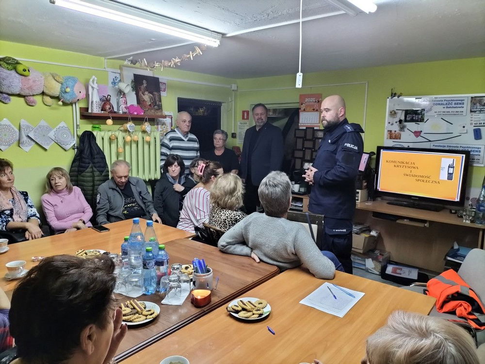 Na początku listopada 2025 roku policjanci z Zespołu ds. Profilaktyki działającego w Wydziale Prewencji Komendy Powiatowej Policji w Bełchatowie uczestniczyli w debacie ewaluacyjnej poświęconej bezpieczeństwu osób starszych. Spotkanie odbyło się w siedzibie Fundacji Zdrowia Psychicznego „Odnaleźć Sens”.